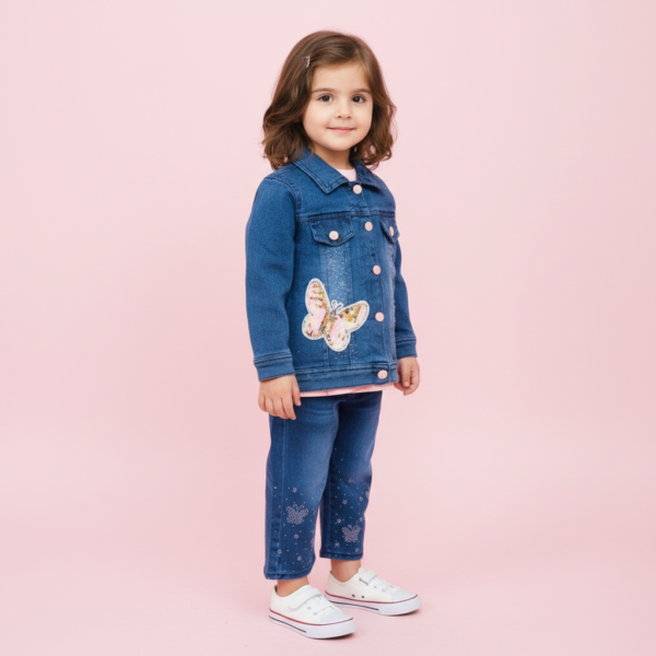 Ye Girls 3 Piece Suit with Jeans Jacket modern aur fashionable style mein design kiya gaya hai. Is set mein shirt, trouser aur jeans (denim) jacket shamil hain jo outfit ko smart aur trendy look dete hain. Soft aur breathable inner fabric all-day comfort provide karta hai, jabke denim jacket outfit ko classy aur stylish touch deta hai. Casual outings, parties aur family functions ke liye ideal choice hai.